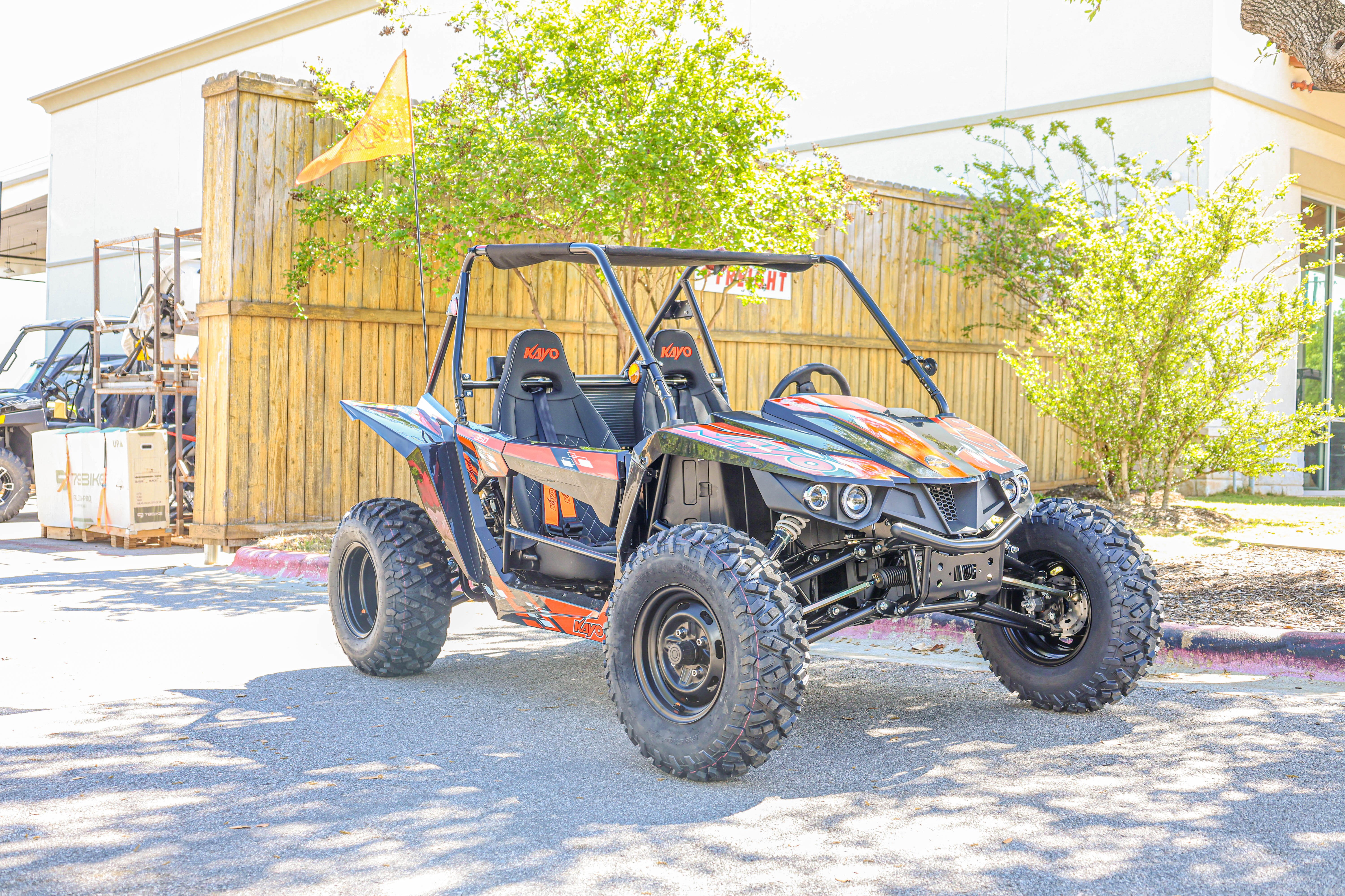 Kayo is all about adventure, and our S200 Side by Side (SXS) and S70 Go Kart deliver thrills for riders of all ages. The S200 SXS is designed for those who crave off-road excitement, with a powerful engine, rugged suspension, and enough space for two—perfect for exploring trails or tackling tough terrain. For younger adventurers, the S70 Go Kart is the ultimate introduction to the world of off-roading. With its easy-to-handle design and reliable performance, it’s built to provide hours of safe, high-energy fun. Whether you're looking for big thrills or a fun ride for the little ones, Kayo has you covered!